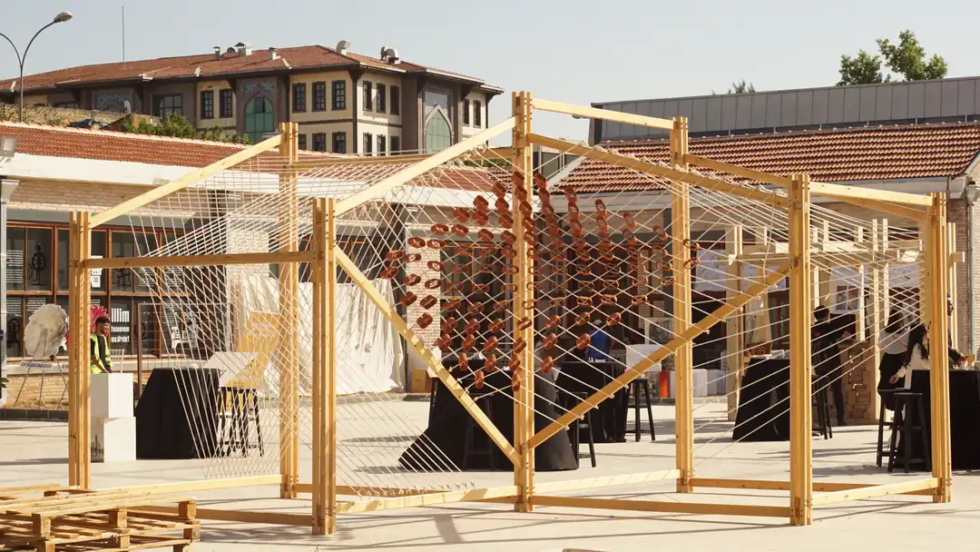 As part of the 2nd Adana Architecture Festival, we produced the “Spatial Weaving”, “Mekânsel Dokuma” installation. The work draws inspiration from the city’s industrial heritage, its weaving culture, and the layered nature of architectural space.Developed through parametric design tools, the installation combines digital precision with local materials and collective craftsmanship.